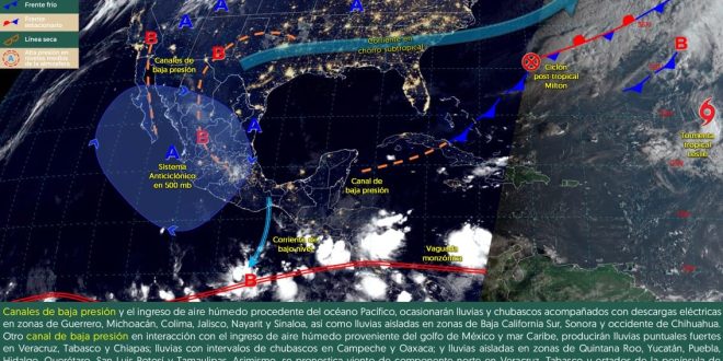 Se prevén chubascos aislados en el sur de Campeche y Quintana Roo, debido al ingreso de aire marítimo tropical aunado al establecimiento de un canal de bajas presiones, en tanto que en el resto de la región la probabilidad de lluvias será escasa. Asimismo, se presentará ambiente cálido a caluroso durante el día y templado a cálido durante el día, con viento del norte-noreste de 15 a 25 km/h y rachas superiores a 40 km/h.