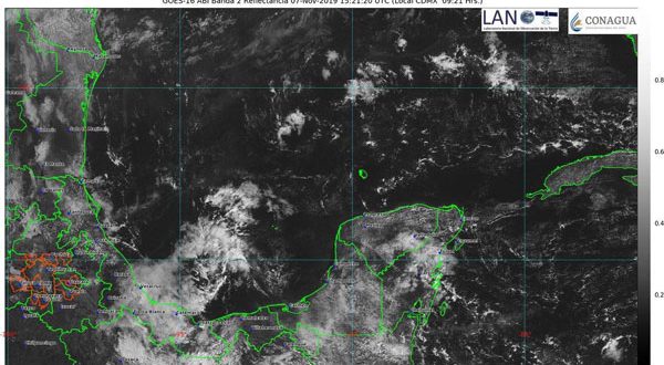 La presencia de una vaguada favorecerá lluvias con intervalos de chubascos (5 a 25mm) en las porciones noroeste, noreste, oriente y sur de Yucatán, mientras que para el resto de la entidad se pronostican lloviznas (1 a 5mm).