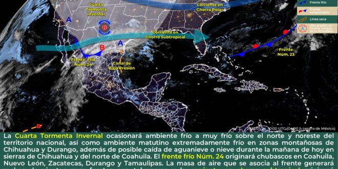 MÉRIDA, Yuc., 24 de enero 2022.- En las próximas 24 horas, se prevé cielo parcialmente nublado, con probabilidad para lloviznas e intervalos de lluvia. Temperaturas cálidas durante el día y de frescas a templadas durante la noche.