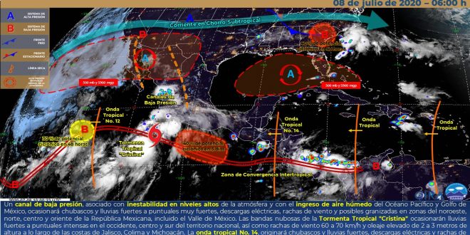 MÉRIDA, Yuc., 08 de julio 2020.- En las próximas 24 horas, se prevé cielo medio nublado, con probabilidad de lloviznas con chubascos, con temperaturas calurosas a muy calurosas durante el día y cálidas al amanecer.