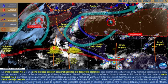 Se prevé que la capa del polvo del Sahara gradualmente reduzca sus concentraciones sobre la península de Yucatán, sin embargo, durante la mañana aún se hará presente la condición de calma, así como algunos nubes aisladas; después del mediodía una vaguada extendida sobre la península de Yucatán y la humedad de su entorno favorecerán nublados dispersos con probabilidad de lloviznas y chubascos sobe el norte y sur de Quintana Roo, sur y centro de Campeche, así como en el noreste, norte-centro de Yucatán. Asimismo, se espera que las temperaturas oscilen en rangos de calurosas a muy calurosas durante el día y cálidas por la noche, viento de dirección este- sureste cambiando al este-noreste de 15 a 25 km/h y rachas de 50 km/h principalmente en zonas costeras y sonda de Campeche.