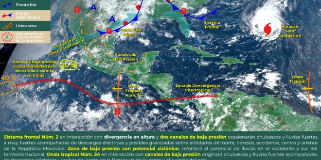 Se prevé que durante este día, un canal de baja presión extendido sobre la península de Yucatán favorecerá cielo medio nublado a nublado con probabilidad de intervalo de chubascos con tormentas sobre Quintana Roo, así como tormentas puntuales fuertes en el norte-centro y sur de Yucatán y Campeche. Las temperaturas serán calurosas a muy calurosas en el día y cálidas durante la noche, con viento del este-sureste cambiando eventualmente al noreste de 15 a 25 km/h y rachas mayores de 45 km/h en zonas costeras.