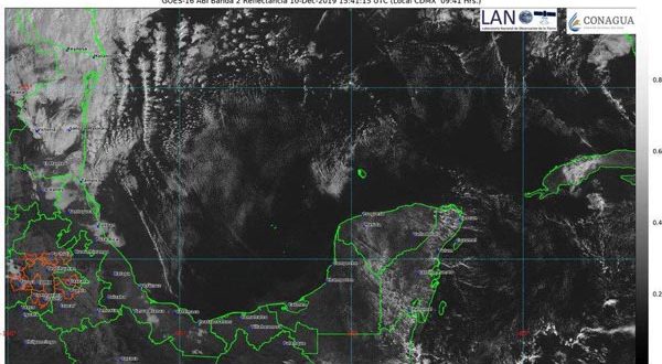 MÉRIDA, Yuc., 10 de diciembre de 2019.- Para este martes se mantienen las condiciones de tiempo estable en la mayor parte de la Península de Yucatán, así como bajo potencial de precipitaciones, lo anterior al seguir el dominio del sistema de alta presión, informa el OCPY de la Conagua.