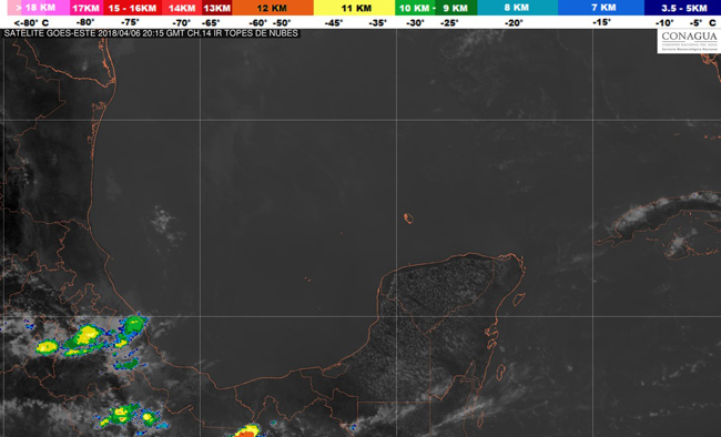Si bien el potencial de lluvias es bajo para este sábado, se pudieran presentar lloviznas aisladas en las porciones sur de Campeche; centro de Quintana Roo; y, oriente y centro de Yucatán.