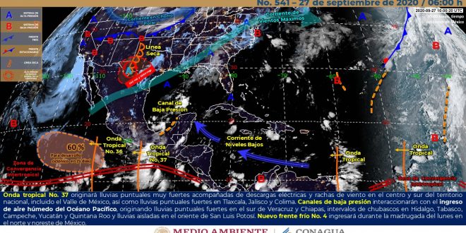 MÉRIDA, Yuc., 27 de septiembre 2020.-En las próximas 24 horas, se prevé cielo parcialmente nublado a medio nublado, con probabilidad de intervalo de chubascos, con temperaturas calurosas a muy calurosas durante el día y cálidas al amanecer.