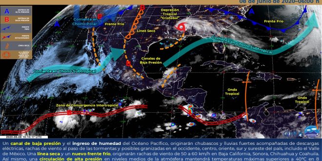 MÉRIDA, Yuc., 08 de junio 2020.- En las próximas 24 horas, se prevé cielo despejado a medio nublado, con probabilidad para lluvias e intervalos de chubascos, con temperaturas cálidas a calurosas durante el día y cálidas al amanecer.