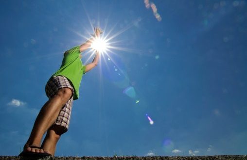 Man catching stone in sun - Shot directly against sun with flares to underrline sunlight