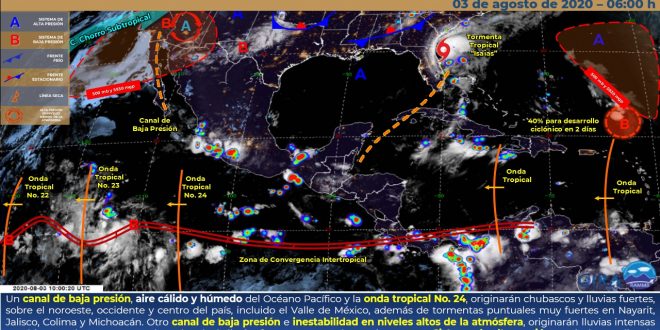 MÉRIDA, Yuc., 03 de agosto 2020.- En las próximas 24 horas, se prevé cielo despejado a parcialmente nublado y probabilidad para chubascos con tormentas, con temperaturas calurosas a muy calurosas durante el día y cálidas al amanecer.