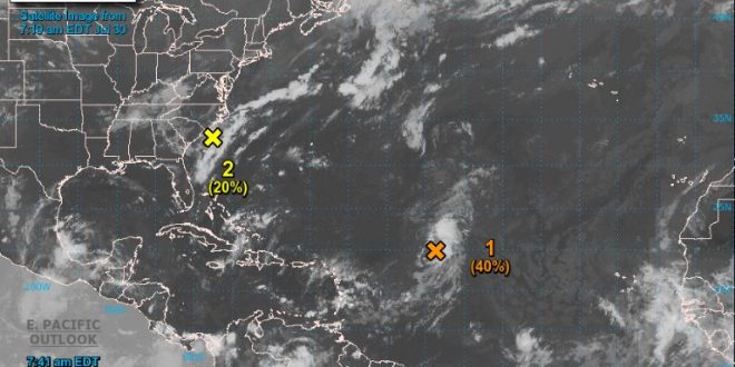 El Centro Nacional de Huracanes (NHC, por sus siglas en inglés), de Miami, Florida, EE.UU., en su informe de las 8:00 A.M. EDT (6:00 a.m. hora del centro de México), para el Atlántico Norte, Mar Caribe y Golfo de México, dio a conocer el pronóstico para dos bajas presiones activas en el la región.