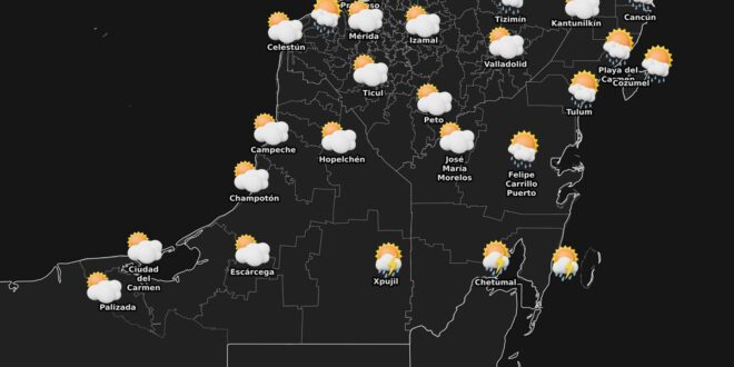 En Mérida, se esperan temperaturas máximas de 33 a 35 °C y mínimas de 16 a 18 °C. En el interior del estado, las máximas se mantendrán en el mismo rango, con mínimas similares.