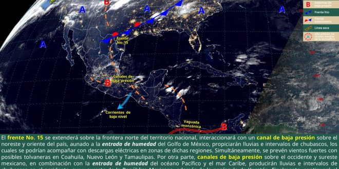 Se presenten condiciones de cielo parcialmente nublado, con probabilidad de chubascos con tormentas aisladas principalmente en el centro y sur de Quintana Roo, en tanto que para el sur de Campeche y oriente, noreste, centro y sur de Yucatán, se prevén lloviznas aisladas, debido al ingreso de aire cálido y húmedo procedente del mar Caribe, en combinación con el calentamiento diurno. Asimismo, se prevé ambiente cálido a caluroso durante el día y templado por la