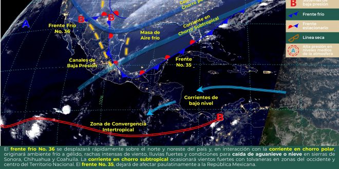 Se prevé que durante las próximas 24 horas, se presenten condiciones de tiempo estable con cielo despejado a parcialmente nublado y escasa probabilidad para lluvias en la región debido al dominio de un amplio sistema anticiclónico el cubrirá el golfo de México y el oriente y sureste del país. Las temperaturas serán calurosas durante el día y templadas a cálidas al amanecer, con viento dominante del sureste de 20 a 30 km/h y rachas mayores a 50 km/h en zonas costeras.