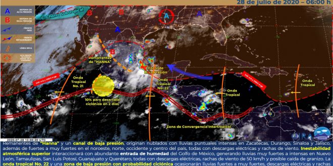 MÉRIDA, Yuc., 28 de julio 2020.- En las próximas 24 horas, se prevé cielo medio nublado con probabilidad de intervalo de chubascos con tormentas, con temperaturas calurosas a muy calurosas durante el día y cálidas al amanecer.