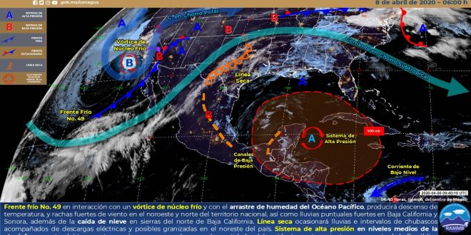 MÉRIDA, Yuc., 08 de abril 2020.- En las próximas 24 horas, se prevé cielo despejado a parcialmente nublado, sin probabilidad de lluvias, con temperaturas de muy calurosas a extremadamente calurosas durante el día y cálidas al amanecer.