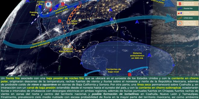 Se prevé cielo despejado a parcialmente nublado, con probabilidad de lloviznas aisladas en Quintana Roo por el ingreso de aire húmedo del mar Caribe. En contraparte, no se esperan lluvias en Yucatán y Campeche debido a la influencia de una circulación anticiclónica. Ambiente caluroso a muy caluroso durante el día y cálido en la noche, con vientos del sureste de 20 a 40 km/h y rachas mayores a 50 km/h.