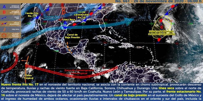 MÉRIDA, Yuc., 26 de noviembre 2020.- En las próximas 24 horas, se prevé cielo despejado a parcialmente nublado, sin probabilidad de lluvias. Temperaturas cálidas a calurosas durante el día y templadas a cálidas al amanecer.