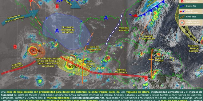 MÉRIDA, Yuc., 19 de septiembre de 2025.- En las próximas 24 horas, se prevé en Yucatán cielo medio nublado a nublado, con alta probabilidad de chubascos con tormentas localmente fuertes en el noreste y oriente del estado, así como precipitaciones fuertes a puntuales muy fuertes en el noroeste, centro y sur.