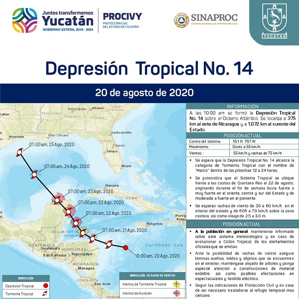 Se forma la Depresión Tropical No. 14 sobre el Océano Atlántico, se ubica a 375 km al este de Nicaragua y a 1,072 km al sureste de #Yucatán.