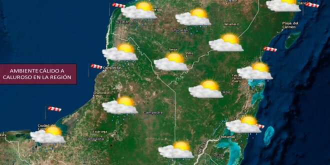MÉRIDA, Yuc., 07 de abril 2026.- Durante esta jornada predominará un ambiente cálido a caluroso, con probabilidad de chubascos por la tarde en la región. Esta mañana se mantiene tiempo estable, con cielo medio nublado debido a nubosidad baja en zonas del occidente, oriente y sur. Vientos del nortenoroeste de 5 a 10 km/h.