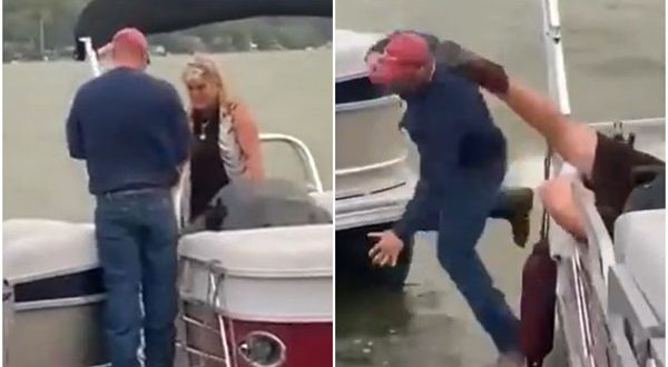En las imágenes es posible ver cómo un hombre, decidido a comprometerse con su pareja en la orilla de un muelle, caminó por la orilla de un pequeño bote para acercarse en el que estaba ella.