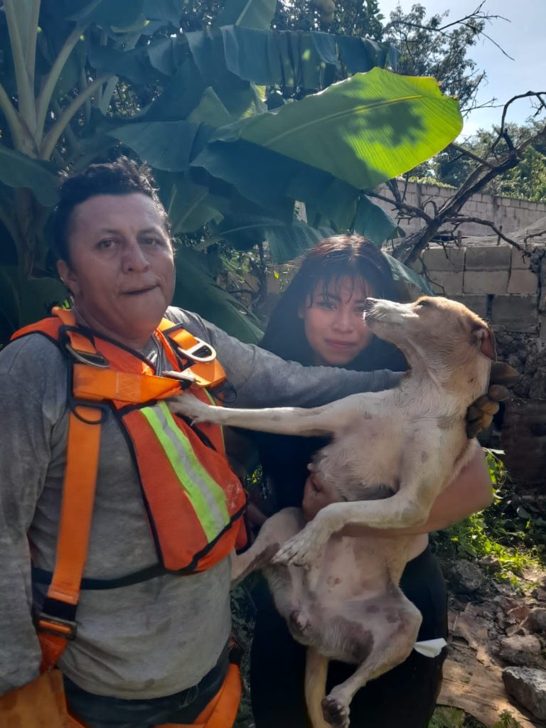 La tensión se apoderó del ambiente mientras los rescatistas realizaban maniobras para sacar al perro con vida. Finalmente, tras varios minutos de angustia, el valiente equipo de Protección Civil logró ponerlo a salvo.