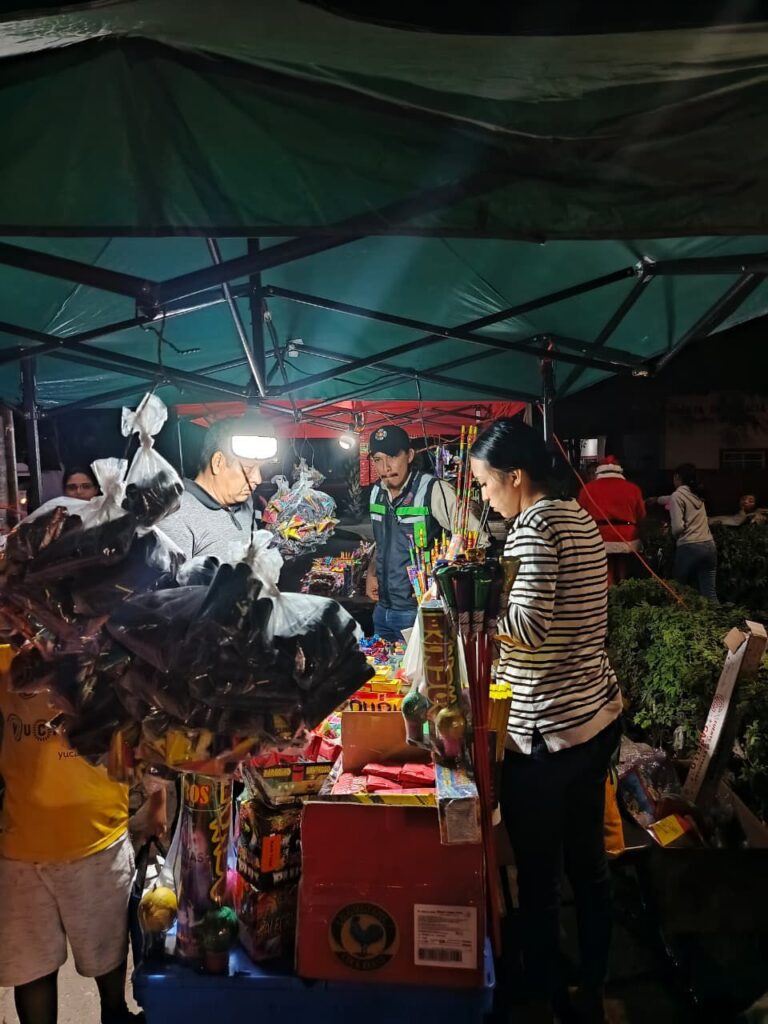 Umán, Yucatán, a 23 de diciembre de 2025.— Como parte de las acciones preventivas para reducir riesgos durante la temporada decembrina, la Jefatura de Protección Civil del H. Ayuntamiento de Umán implementa de manera permanente el Operativo Municipal de Prevención por Pirotecnia, el cual contempla inspecciones, capacitación y supervisión en los puntos de venta de artificios pirotécnicos en el municipio.