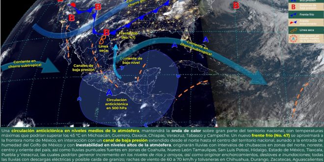 Se prevé que continúe la influencia de un anticiclón sobre la península de Yucatán, por lo que se mantendrán condiciones de tiempo estable con cielo despejado a parcialmente nublado en los tres estados de la región, sin probabilidad de lluvias. El ambiente será muy caluroso durante el día y cálido por la noche, con viento del