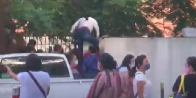 Sin tomar en cuenta las recomendaciones de salud para evitar aglomeraciones y sana distancia, para evitar contagios de Covid-19,los directores y docentes protestantes decidieron colocar cadenas y bloquear todos los accesos para impedir que personas entren y salgan de la dependencia.