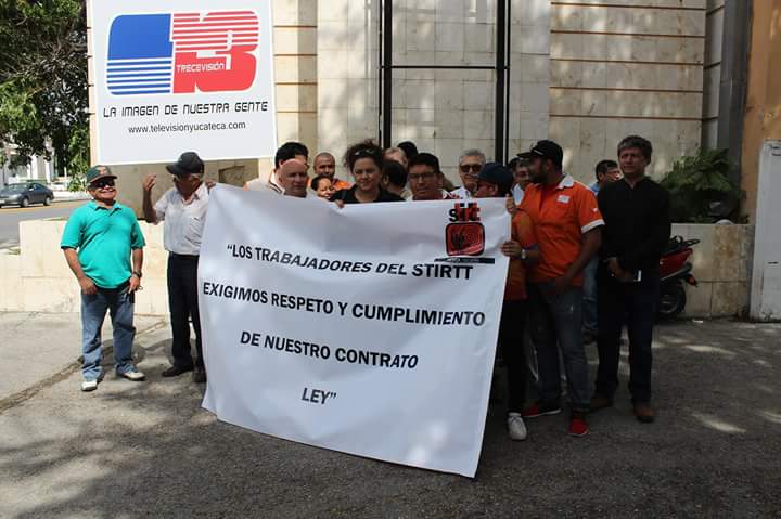 En el lugar se encontraban los representantes de la mesa directiva del STIRTT Sección Mérida: El Lic. Manuel Ricalde Martínez, la LCC. Natalia López López y el LP. Juan Sánchez Gamboa, Secretarios de Trabajo, Finanzas y Educación del Comité Seccional Mérida, respectivamente; quienes en conjunto con los compañeros trabajadores de la empresa se dieron cita en punto de las 9:30 de la mañana en las oficinas del Canal 13 para solicitar un diálogo entre ambas partes, y así conseguir que se respete lo establecido en la ley.
