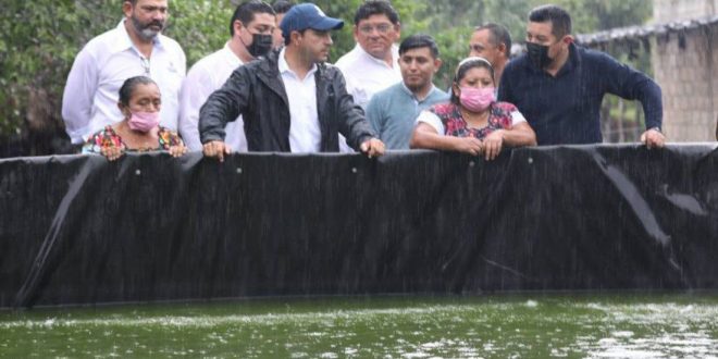 En Kanxoc, el Gobernador junto con el alcalde anfitrión, Alfredo Fernández Arceo, acudió a la Unidad Rural de Producción de Tilapia “Noh Abán”, que está a cargo de mujeres que trabajan fuertemente día a día y con el impulso del Gobierno del Estado a través de la entrega de un apoyo económico con el cual pudieron levantar su unidad que está equipada con una base estanque, oxigenador, peces, alimentos y tubería de desagüe.