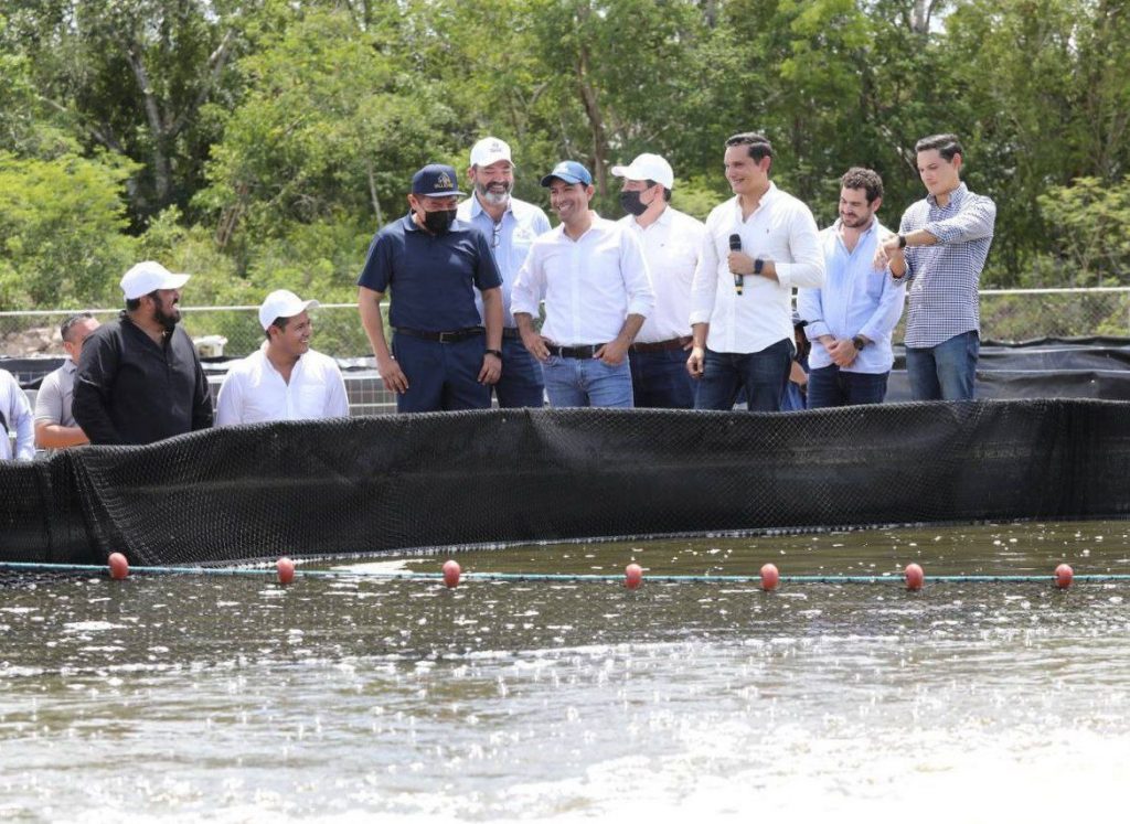 Mientras Vila Dosal conocía el proceso de cosecha sustentable, conoció las tinas de 16 metros de diámetro donde se siembran alrededor de 12 mil alevines o crías de esta especie, con lo que se cosechan en promedio 5 toneladas a la semana de producto listo para la venta con la ayuda de trabajadores locales que en su mayoría provienen de la villa de Temozón.