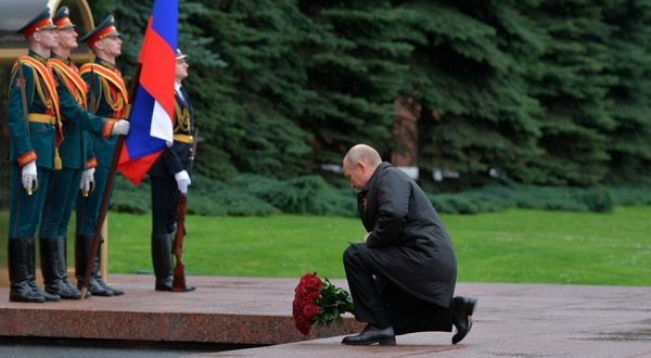 En el monumento, ubicado junto a la muralla del Kremlin, Putin depositó junto a la Llama Eterna un ramo de rosas rojas y guardó un minuto de silencio.