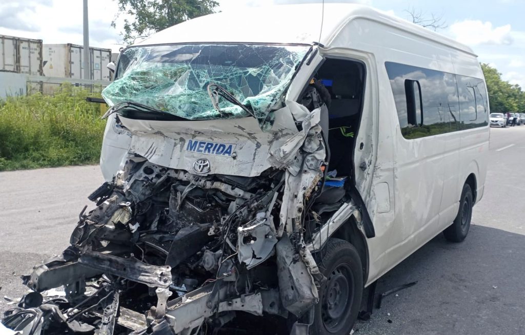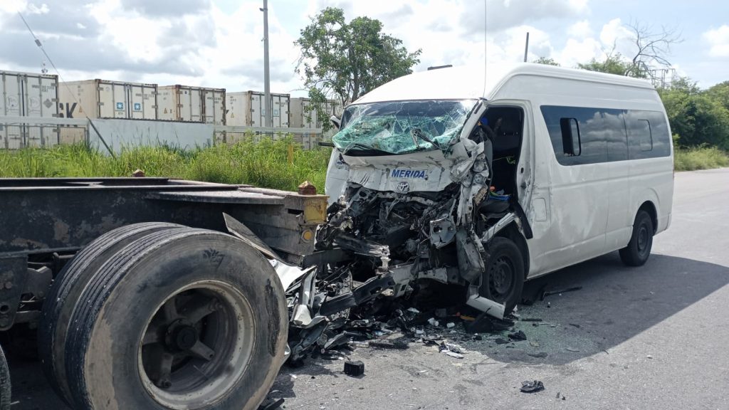 El accidente ocurrió a la altura del kilómetro 29 de la carretera Mérida-Progreso. Don Raúl se dirigía al puerto a bordo de la camioneta de transporte de pasajeros a su cargo, pero se durmió al volante y sin control se fue contra el vehículo pesado que tenía por delante.