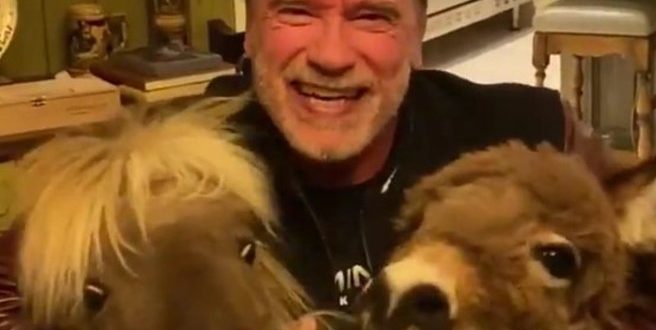 Lo más divertido es que en el clip, Schwarzenegger aparece con un adorable burrito y un ponny.