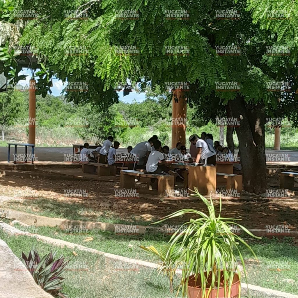 El caso es que los alumnos abandonaron el aula y por órdenes de ella fueron trasladados al salón de usos múltiples y de ahí a la biblioteca, donde sólo funcionan los ventiladores y es insuficiente para los 28 alumnos de ese grado.