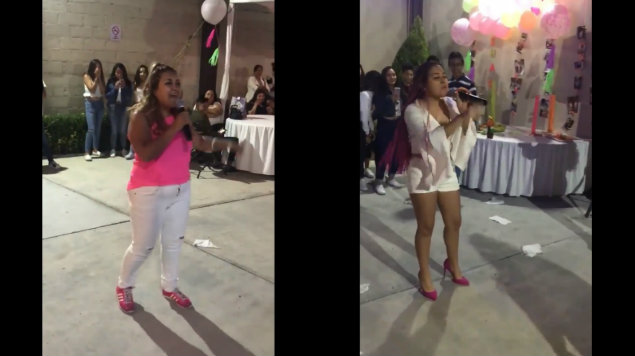 Al final la batalla terminó en paz y la mamá de la festejada invitó a los asistentes a la celebración del quince aniversario de su hija, a divertirse.