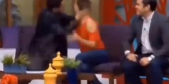 Cuando el hombre entró al set intentó besar a una de las presentadoras, pero ésta giró su cabeza para evitar el contacto con él, sin embargo, cuando se acercó a León para saludarla, en lugar de besar su mejilla, la tomó del cuello para intentar besarla en la boca.