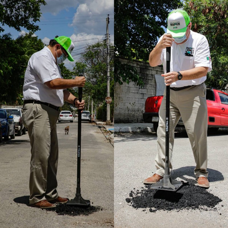 Por ello, el candidato a la alcaldía de Mérida, Jorge Carlos Ramírez Marín se reunió con un grupo de vecinos y expertos y demostró que en sólo cuatro minutos se puede arreglar un bache y tener hasta cuatro años de garantía.