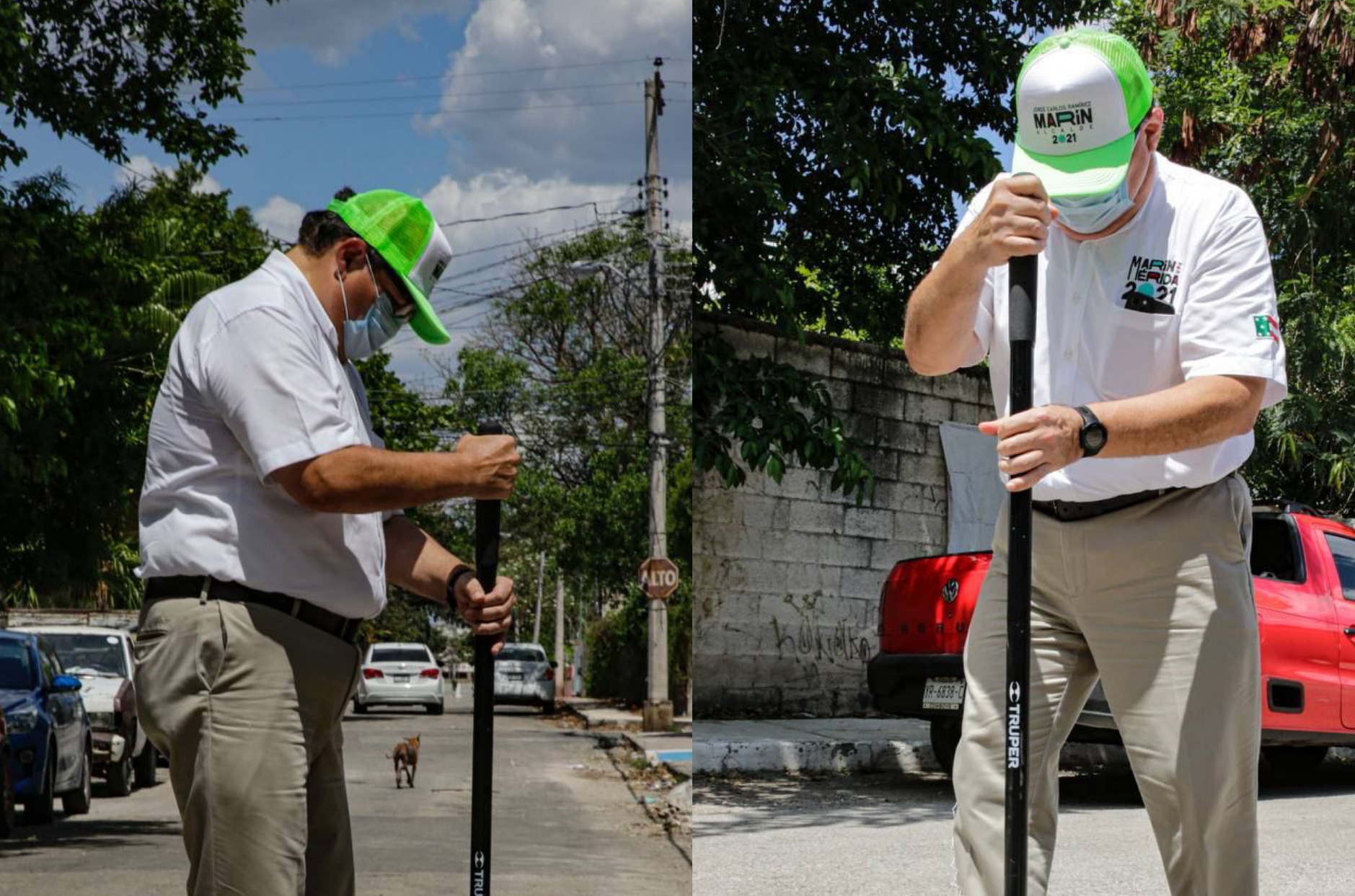 El abanderado del PRI-PRD constató las malas condiciones de varias calles de la colonia Chuburná, donde se puso a prueba este nuevo método de bacheo, que permitirá atender una de las principales demandas de los meridanos.