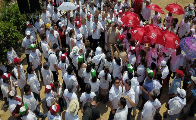 En medio del ánimo de la multitud, que no decayó a pesar de que el sol que caía a plomo, Ramírez Marín afirmó que van por todo para ganar en estas elecciones y su objetivo central es servir a Yucatán desde los diferentes órdenes de gobierno, a fin de mejorar las condiciones de vida de las familias.