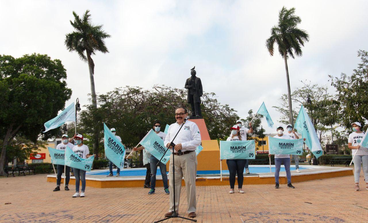 MÉRIDA, Yuc., 9 de abril 2021.- El candidato a la alcaldía de Mérida por el PRI Y PRD, Jorge Carlos Ramírez Marín arrancó desde esta mañana su campaña previo a los comicios electorales.