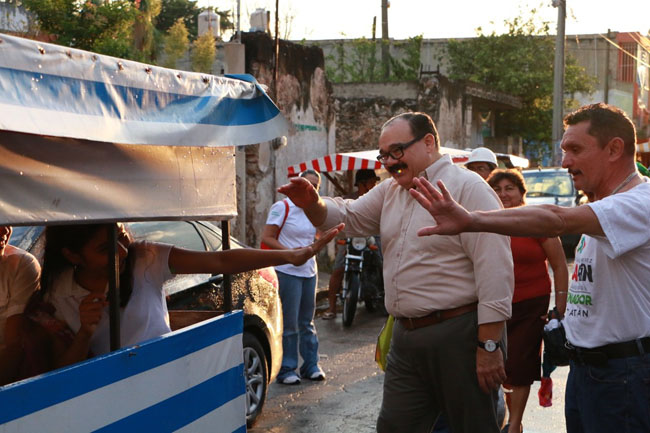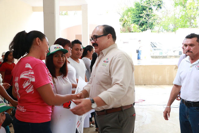 “Nada se consigue sin esfuerzo y el esfuerzo tiene que estar marcado por el ánimo y la alegría”, afirmó ante numerosos vecinos de Muna, donde acompañó en un recorrido a Rubén Carrillo Sosa y Luis Borjas Romero, candidatos a la presidencia municipal y a la diputación local del XIII Distrito, con sede en Ticul.