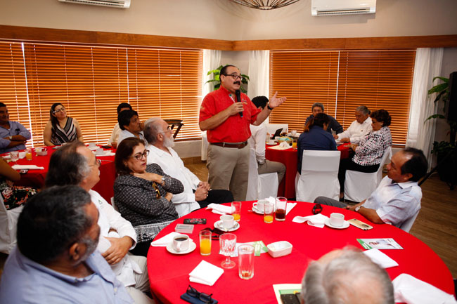 Invitado por Sinergia en Acción, que encabeza Alfonso González Fernández, yucateco que ocupa un lugar en la Asamblea General de la ONU como presidente del Consejo Mundial de Ingenieros Civiles, Ramírez Marín escuchó con atención las inquietudes y propuestas del colectivo, relacionadas con desarrollo sustentable, manejo del agua, drenaje sanitario, infraestructura, energías limpias, patrimonio edificado, desarrollo urbano y temas sociales como la seguridad y la violencia contra las mujeres.