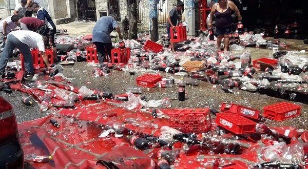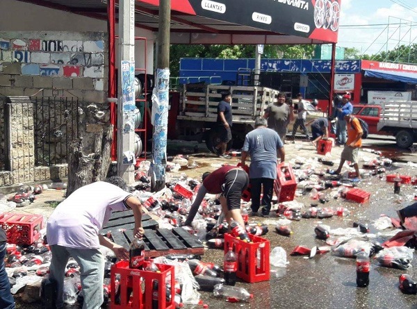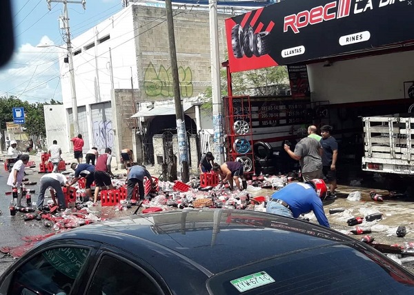 Mérida, Yucatán a 16 de agosto (Yucatán al Instante). La rapiña alcanzó a los meridanos, luego de que un tráiler por accidente tiró cajas de refrescos en el oriente de Mérida, acción que fue aprovechada por colonos y personas que transitaban por la zona para rapiñar todo lo que había regado.