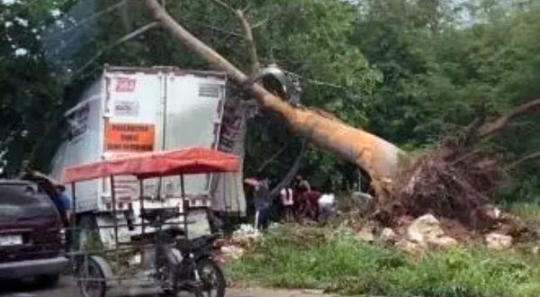 MÉRIDA, Yuc., 27 de julio 2022.- El chofer de un camión que transportaba leche se accidentó este martes en la carretera federal Mérida-Cancún, cuando iba con dirección de la capital yucateca a Valladolid.