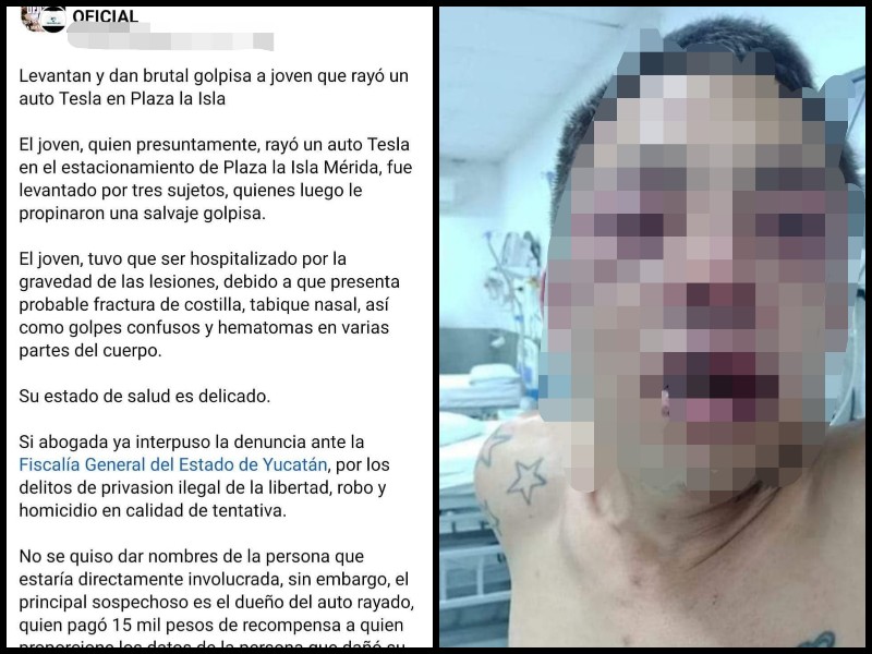 MÉRIDA, Yuc., 19 de abril 2023.- En Facebook ha empezado a circular una nota escrita, en un grupo de vecinos de la ciudad Caucel. En ella comentan que el joven que fue grabado rayando un auto Tesla, fue levantado y golpeado al grado de ser hospitalizado, y quien el sería ahora quien interpondrá una demanda por lesiones y secuestro.
