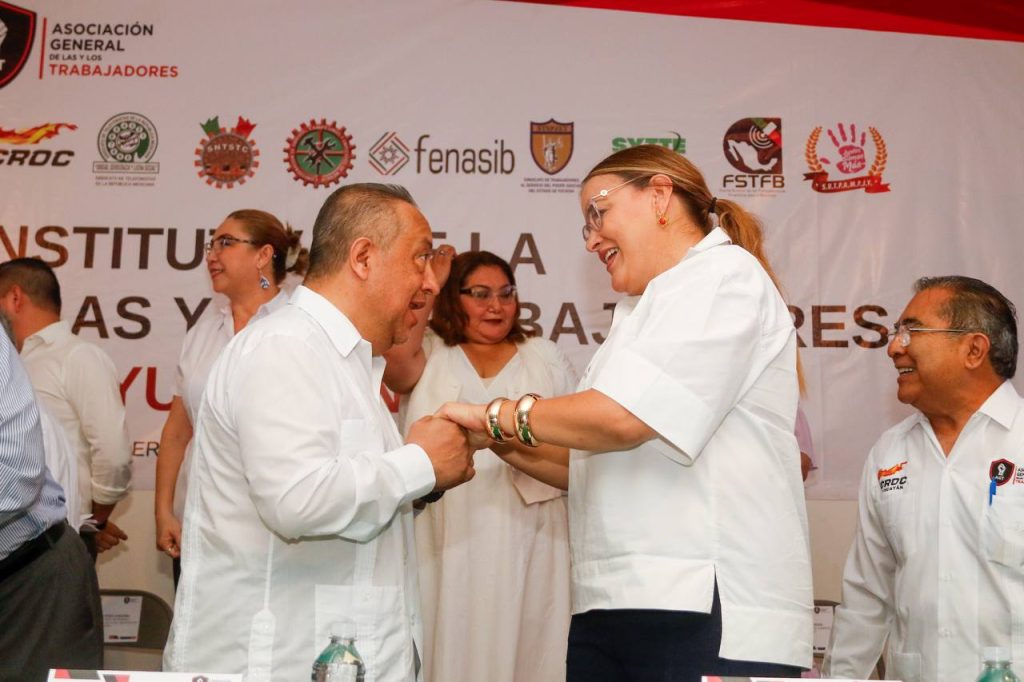 De igual manera, Cecilia aseguró que “trabajaremos en conjunto con el gobernador Joaquín Díaz Mena y con los sindicatos para impulsar la prosperidad y el bienestar de las y los trabajadores y sus familias.