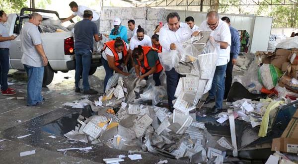 En presencia de la Consejera Presidente, María de Lourdes Rosas Moya; las consejeras electorales, Alejandra Pacheco Puente y María del Mar Trejo Pérez; del secretario Ejecutivo, Hidalgo Victoria Maldonado; y del director de Organización y Participación Ciudadana, Christian Hurtado Can, personal del Instituto inició el procedimiento en la bodega electoral subiendo el material, previamente clasificado, a camiones que lo trasladaron a la empresa “Recuperadora de Cartón del Sureste S.A. de C.V.”.