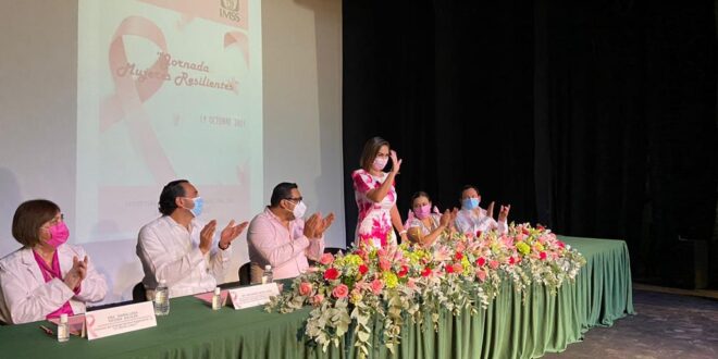 En la inauguración de la “Jornada Mujeres Resilientes”, realizada en el Teatro “Doctor Joaquín Jiménez Trava”, la titular del IMSS en Yucatán, doctora Miriam Victoria Sánchez Castro, remarcó la presencia del personal, tanto operativo como directivo en este evento realizado para resaltar las acciones de diagnóstico oportuno del cáncer de mama que el instituto realiza en las unidades y hospitales.
