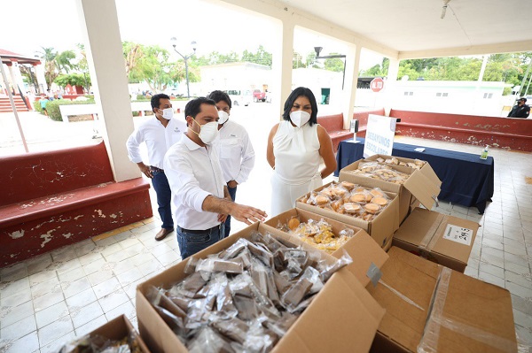 Acompañado por los titulares de las Secretarías de Educación (Segey), Loreto Villanueva Trujillo y de Desarrollo Social (Sedesol), Roger Torres Peniche, el Gobernador también constató el arribo a estos municipios de los libros de texto gratuito, los desayunos escolares que se repartirán entre 115,000 estudiantes de preescolar y primero y segundo grado de primaria de todo el estado, para que los menores cuenten con esos productos alimenticios, aunque por el momento no haya clases presenciales.